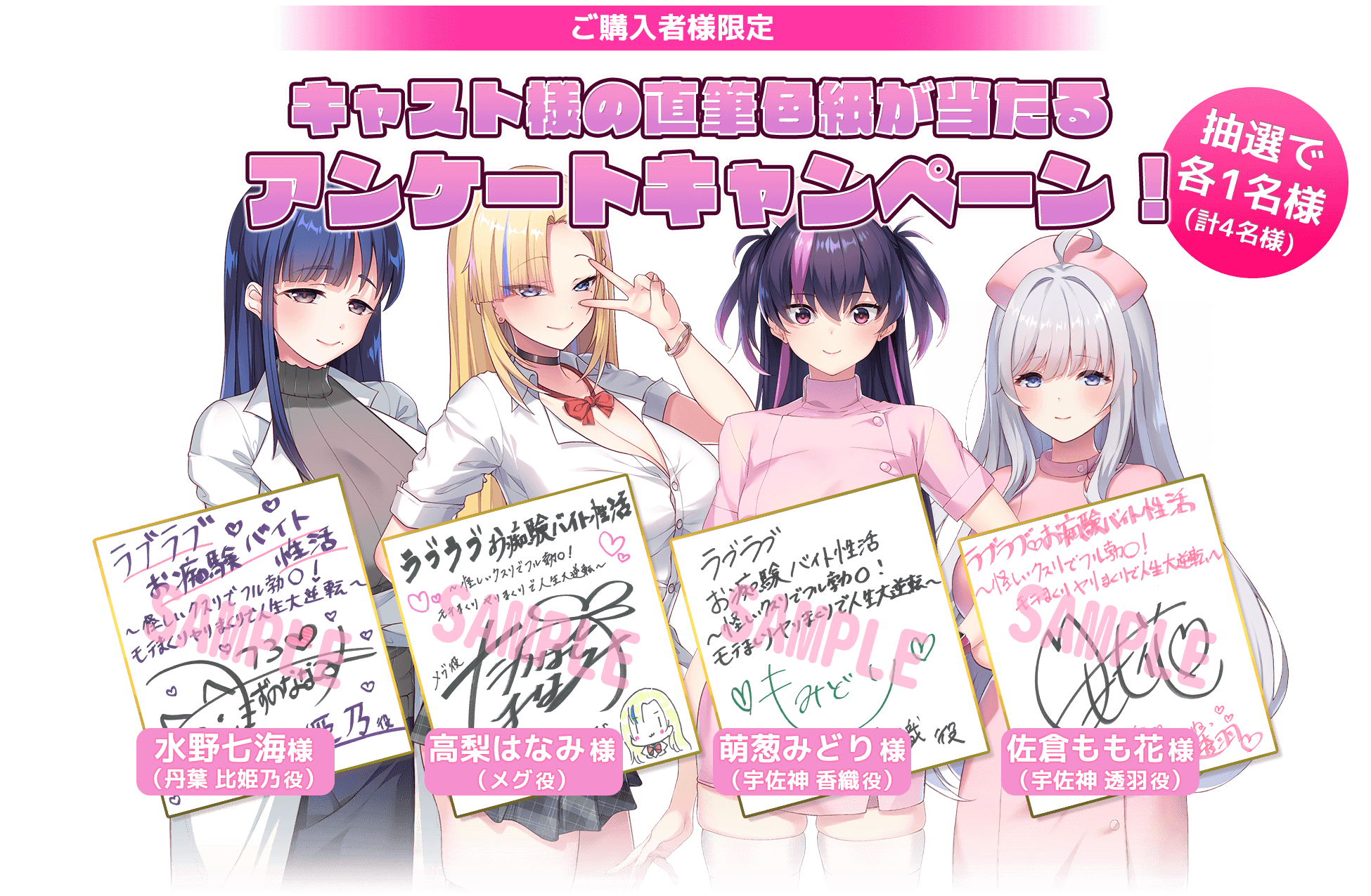 抽選で各1名様、合計4名様にキャスト様直筆サイン色紙をプレゼント!
